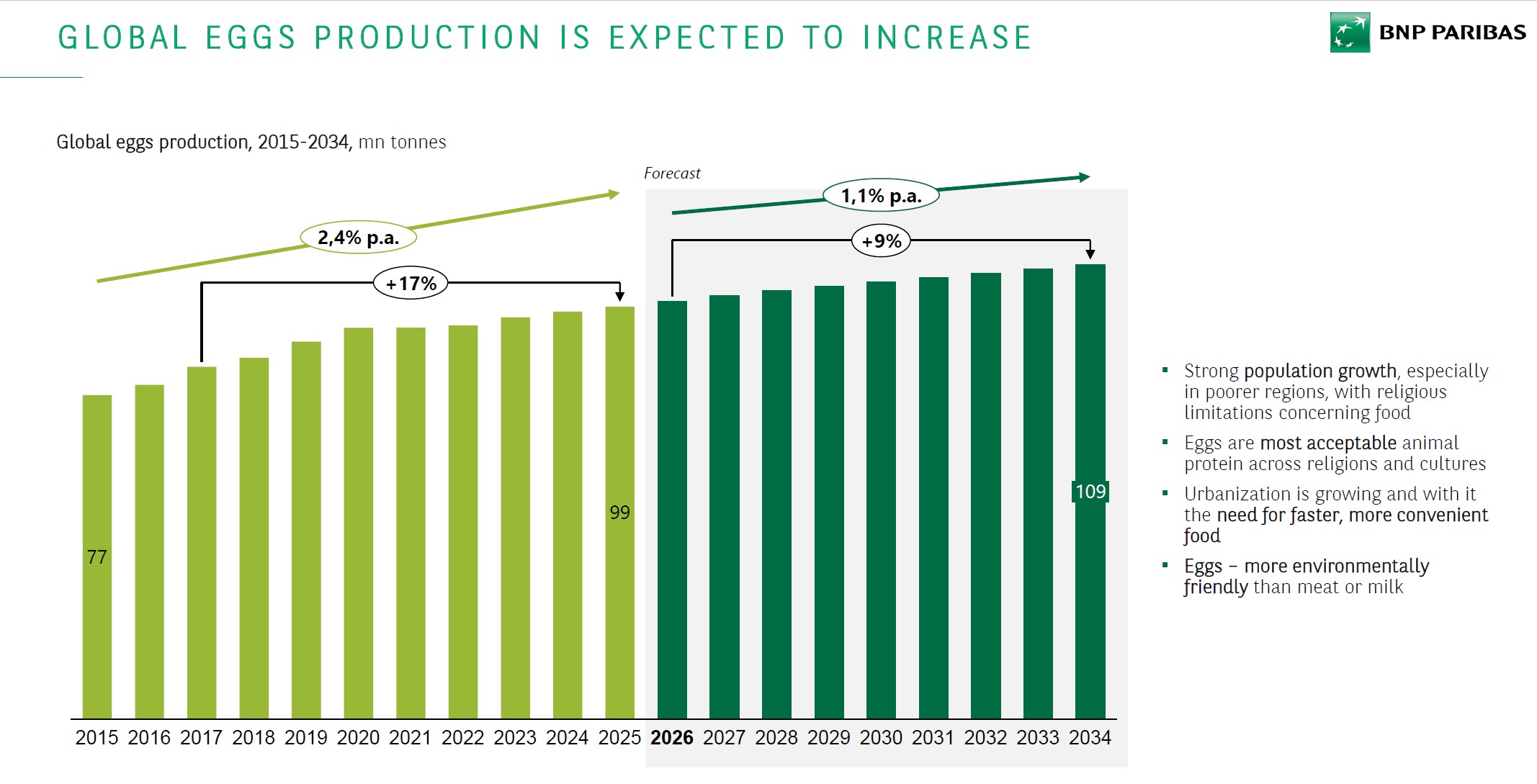 The global egg market is entering a more complex phase, with steady demand running up against tighter supply, geopolitical uncertainty and a changing cost base, delegates at the World Egg Conference heard today.Dr Magdalena Kowalewska, Director of the Food and Agri Sector Analyses Bureau at BNP Paribas Bank Polska, outlined a sector that remains structurally robust but increasingly exposed to volatility. Eggs, she said, continue to stand apart from other animal proteins, with production still largely local despite growing consolidation in processing and distribution.That distinction continues to shape how the market behaves. While international trade in eggs and egg products is expanding, primary production remains fragmented and regionally anchored, limiting global flows compared with poultry meat. Data presented in Warsaw showed egg trade at just a fraction of poultry meat flows in value terms, reinforcing how regionally contained the sector remains.