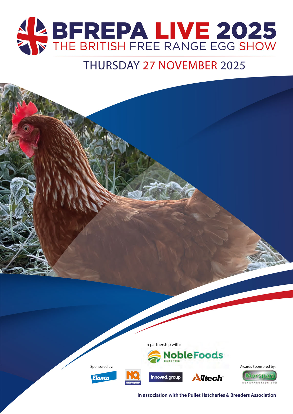 BFREPA are delighted to host the 2025 British Free Range Show at the Telford International Centre on Thursday 27th November 2025, in association with the Pullet Hatcheries & Breeders Association, in partnership with Noble Foods, and sponsored by Newquip, Elanco, Alltech and Innovad Group.