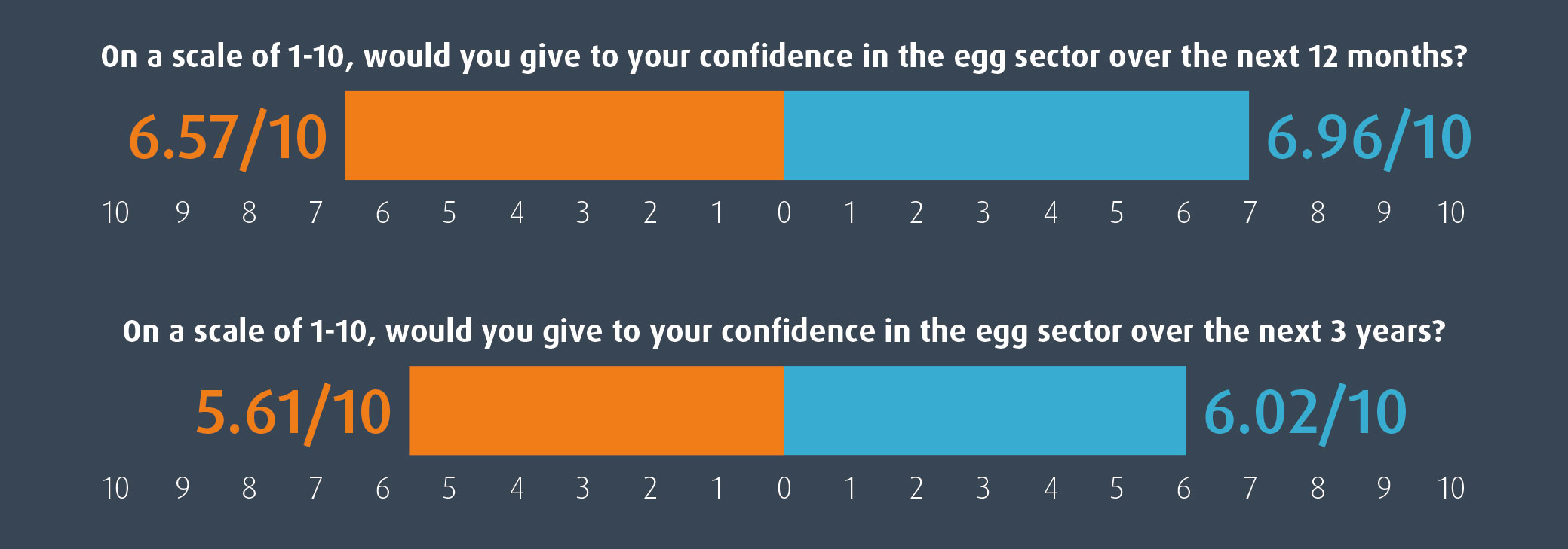 Producer confidence in the UK egg sector enters 2026 on a steadier footing than a year earlier, with sentiment improving modestly but decisively across both short and medium term outlooks.While optimism has not translated into a surge of expansion plans, the data suggests a sector that has moved away from retrenchment and towards cautious stability, shaped as much by external pressures as by market fundamentals.The headline confidence scores tell a clear if restrained story. Producers rated their confidence in the egg sector over the next 12 months at an average of just under seven out of ten in 2026, up from the mid sixes recorded the previous year. Confidence over the next three years also strengthened, rising from the mid fives in 2025 to just over six in 2026. These are not dramatic shifts, but they are meaningful in a sector where confidence is typically slow to move and often shaped by long investment cycles rather than short term price signals. Importantly, the median score for the three year outlook rose by a full point, suggesting that improved sentiment is not confined to a small group of particularly optimistic producers, but is more broadly shared across the industry.