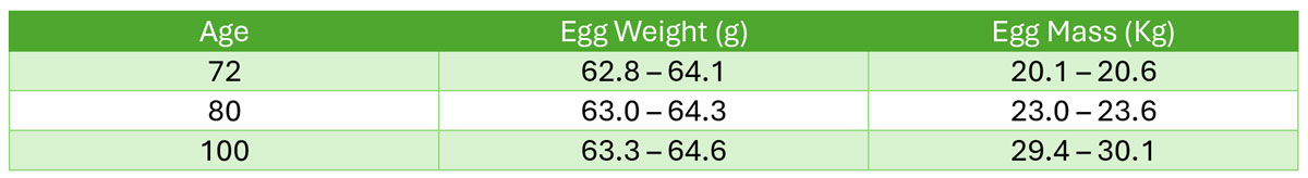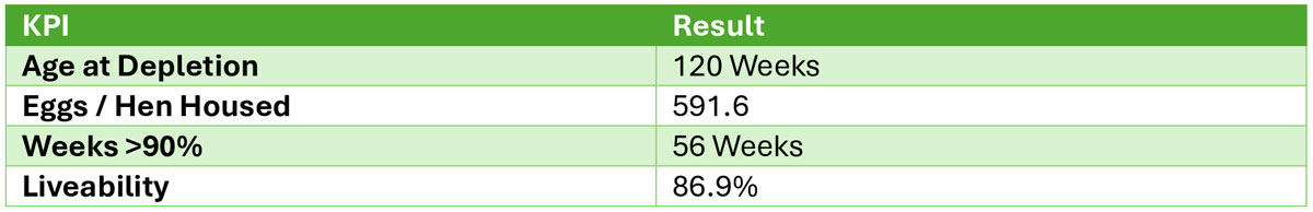 100 Weeks and BeyondLongevity has become the key word in the egg sector recently on both Brown and White flocks. White flocks started this trend and it now continues to gain pace. 100 weeks was the original target but this has already been superseded and producers are now looking at 110 weeks and beyond.Lohmann are continuing to push this trend and we have seen a Barn flock out in Europe complete a cycle to 120 weeks, with the following KPI’s.