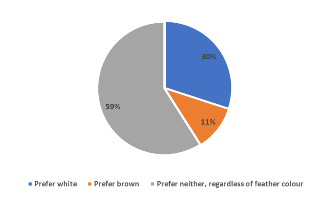 This suggests that while supply chain requirements remain influential, producer experience is also playing a growing role in the adoption of white laying hens.Managing White Flocks in PracticeA key finding from the survey was that 67% of respondents considered white breeds easier to manage than brown breeds. This perception appears to be based on a combination of behavioural observations, production performance, and overall flock consistency.When asked about preferences for managing white or brown breeds with intact beaks, or neither, more than half, 59% of respondents indicated they would prefer not to manage intact-beaked birds regardless of feather colour. Of those willing to manage intact-beaked birds, two-thirds preferred white flocks over brown (Figure 2).